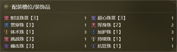 武器:射法珠Ⅲ【3】、超心珠Ⅲ【2】、贯穿珠【3】