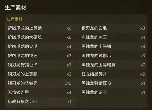 护凶爪龙、黑蚀龙、锁刃龙、冻峰龙
