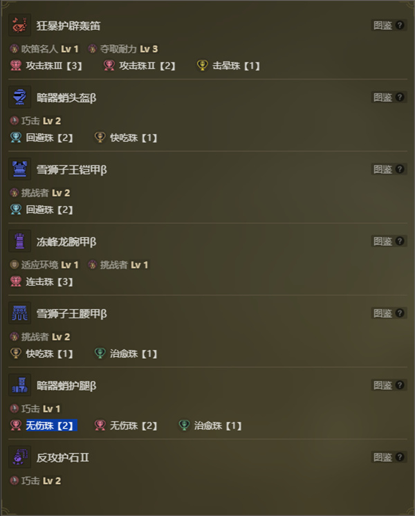 脚部:无伤珠【2】、无伤珠【2】、治愈珠【1】