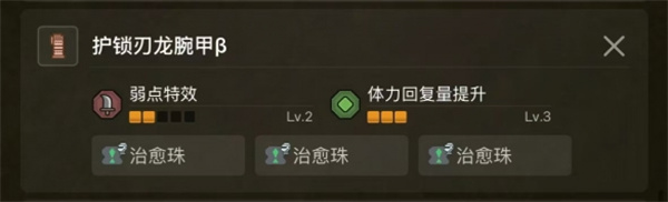 防御318、火耐2、水耐6、雷耐-5、冰耐4、龙耐-12