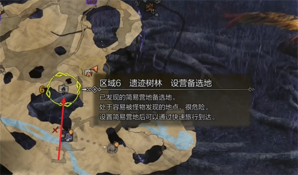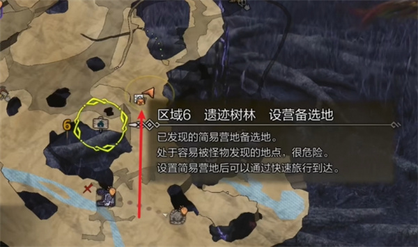 1、我们来到龙都遗迹区域5的遗迹树林的营地。