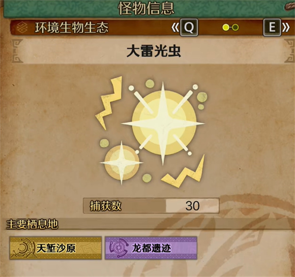 在动作角色扮演游戏怪物猎人荒野中,大雷光虫是一种比较稀有的环境生物,部分玩家不知道大雷光虫的具体位置在什么地方,下面就为大家带来怪物猎人荒野中大雷光虫的具体位置分享,有需要的玩家可以参考。
