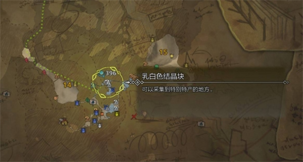 1、我们可以在地图上找到天堑沙原区域14的乳白色结晶块。