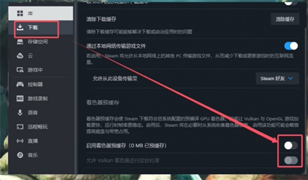 2、关闭steam着色器缓存设置