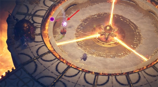 BOSS吐出的发光球体不要触碰,碰到之后会被定身,需要另一名角色的帮助才能解开。