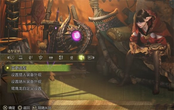 接着选择最右侧的造型菜单,并点击设置猎人装备外观选项。