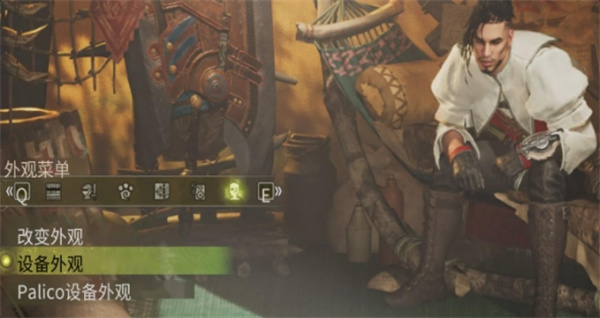 进入帐篷的外观设置菜单,选择“设备外观”选项,即可切换各个装备部件的可见性。