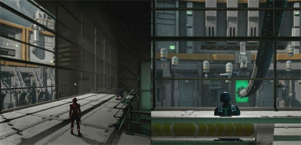 在这个任务中有一个地方需要玩家将喷气背包放置到基座上,放好继续走就能够看到一个大窗户,在窗户左边可以看到长椅。