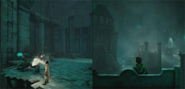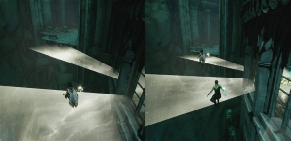 1、当推进这个任务到结尾的时候需要角色爬过水车,其中玩家一改变水车方向使玩家二能够借助其爬到顶端。