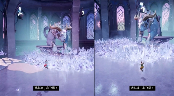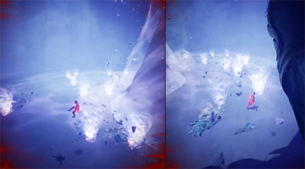 二阶段开始我们会被震飞,掉落在坡度向下的冰面上开始滑行。