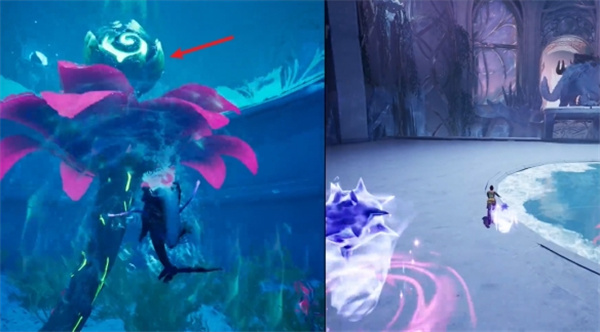 BOSS被砸之后头会垂到地上陷入硬直,水里的人要及时出来攻击BOSS头顶的珍珠,硬直起身后BOSS会封住池塘。