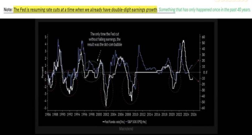 历史经验显示,在盈利强劲时降息(如上世纪 1998 年)能延长牛市。但这次情况不同:通胀依然顽固,「美股七巨头」盈利亮眼,而标普 500 其余 493 家公司表现平平。