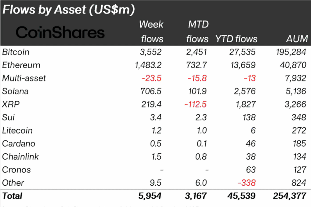 尽管美国政府部分停摆,Solana ETP仍迎来史无前例的资金流入。CoinShares数据显示,这类投资产品单周资金流入达7.06亿美元,推动所有Solana ETP的管理资产规模(AUM)突破51亿美元大关,较7月份创下的3.11亿美元前纪录高出逾一倍。