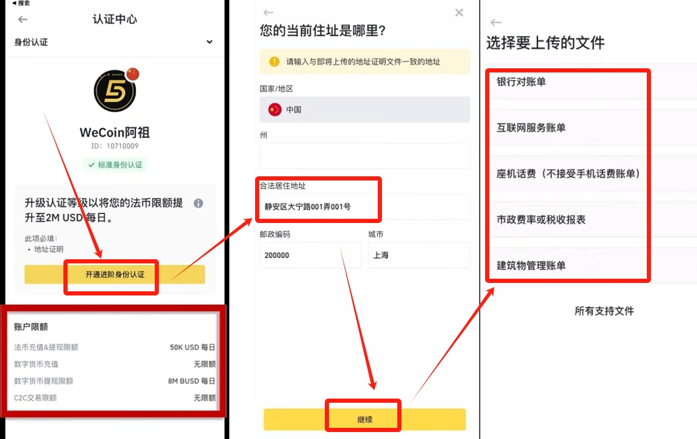 实名认证是必须要做的,否则是不能买币的。这个实名认证分为两个等级。标准身份认证需要拍照身份证然后扫脸。进阶身份认证,需要水电账单等验证地址。普通情况下,一级就够了。有条件的话可以认证第二等级。就按照平台的顺序进行填写就可以了。