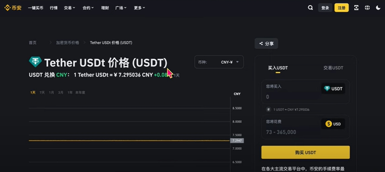 现在币安的APP,也就可以正常的来使用了。在我们买比特币这些加密货币之前,我们需要先做一件事,就是购买USDT。什么是USDT呢?它其实是一种数字货币,它跟美元是1:1等值挂钩的,所以又叫稳定币。我们要买其他的数字货币,就需要稳定币来进行购买。