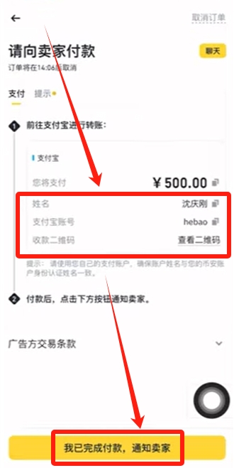 根据商家提供的支付信息给他转钱,转完钱之后点击下方的【我已付款,通知卖家】,等待卖家核实收到钱之后就会把币打给我们了。