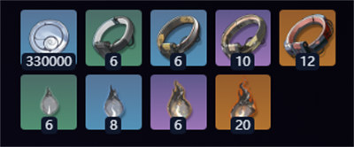 贝币×330000、简陋镣环×6、基准镣环×6、改造镣环×10、特制镣环×12、含杂晶化燃素×6、粗萃晶化燃素×8、精馏晶化燃素×6、高纯晶化燃素×20