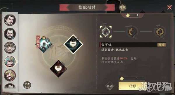 在养成路线上,于禁更适合选择下行分支的强弓火矢路线。火矢带来的灼烧效果具有优秀的持续伤害能力,配合于禁的高攻击属性,可以有效清除敌方武将和兵力,加快战场清扫速度。技能方面,前期推荐使用突刺和猛攻来提升输出,后期可以更换为钩镰或假节钺等技能,以更好地创造合击环境。如果队伍中有其他武将能够协助制造合击机会,突刺仍然是可靠的伤害技能。