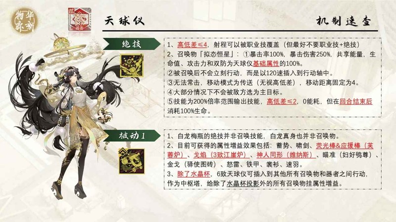 4、适用所有环境推荐队友T形帛画浑天仪等,缺点是对致知要求高召唤队友强度低仅T形帛画表现较好。