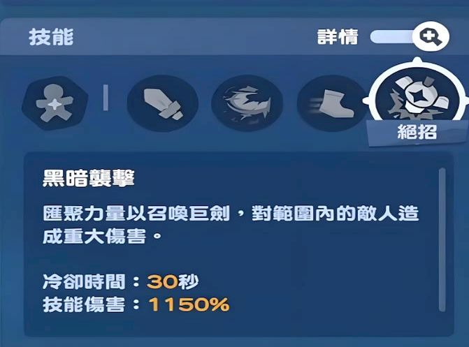 2、小技能黑暗剑击基础倍率7点5倍,被动满层超14倍,必杀技倍率超20倍冷却30秒,满星无视50%防御,蓄力读满手动放更快。
