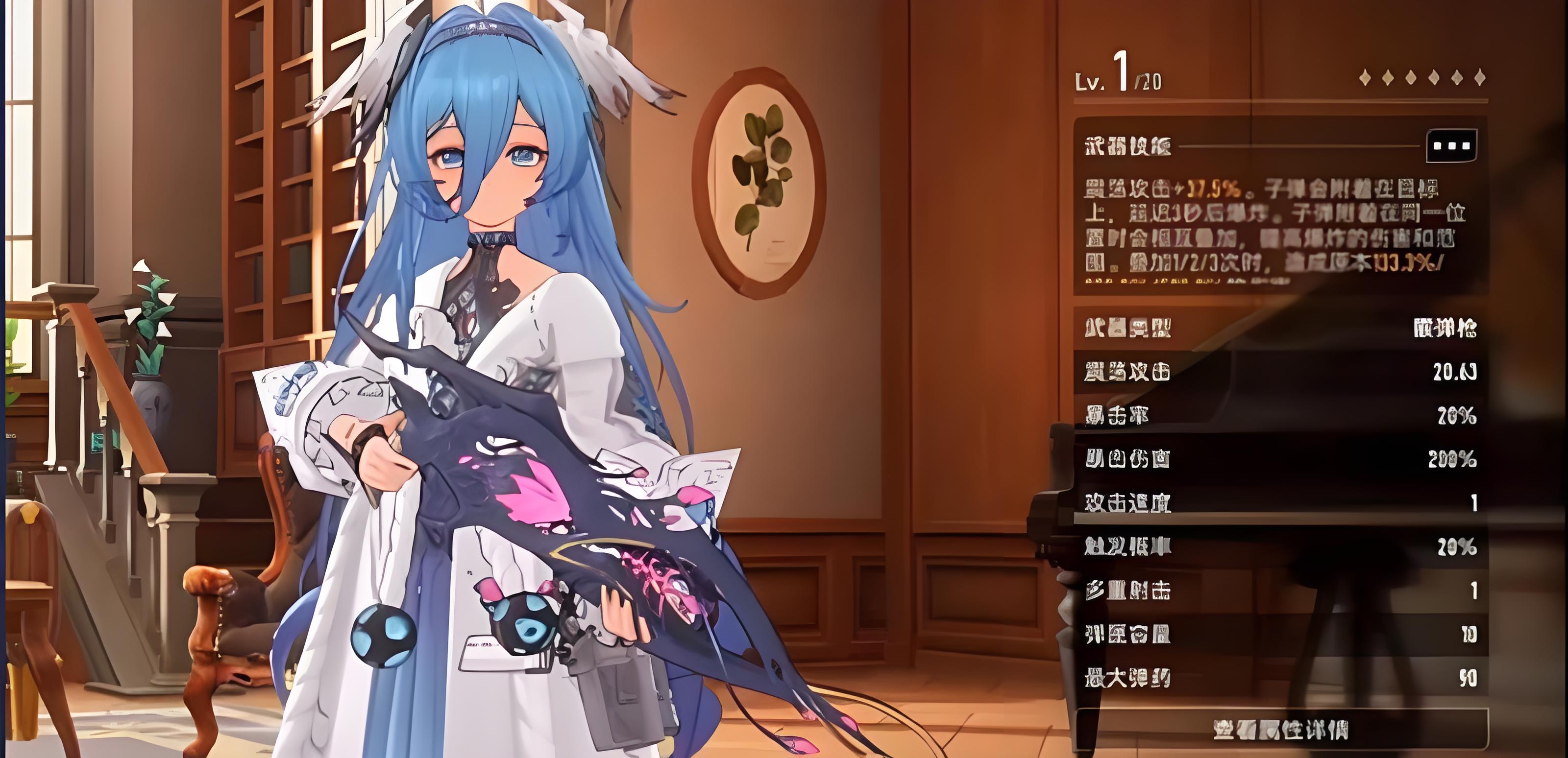 2、基础属性含20点63震荡攻击,20%攻速加成,200%暴击伤害,20%震荡概率,90发最大弹药,子弹黏附3秒后爆炸且能叠加点点。