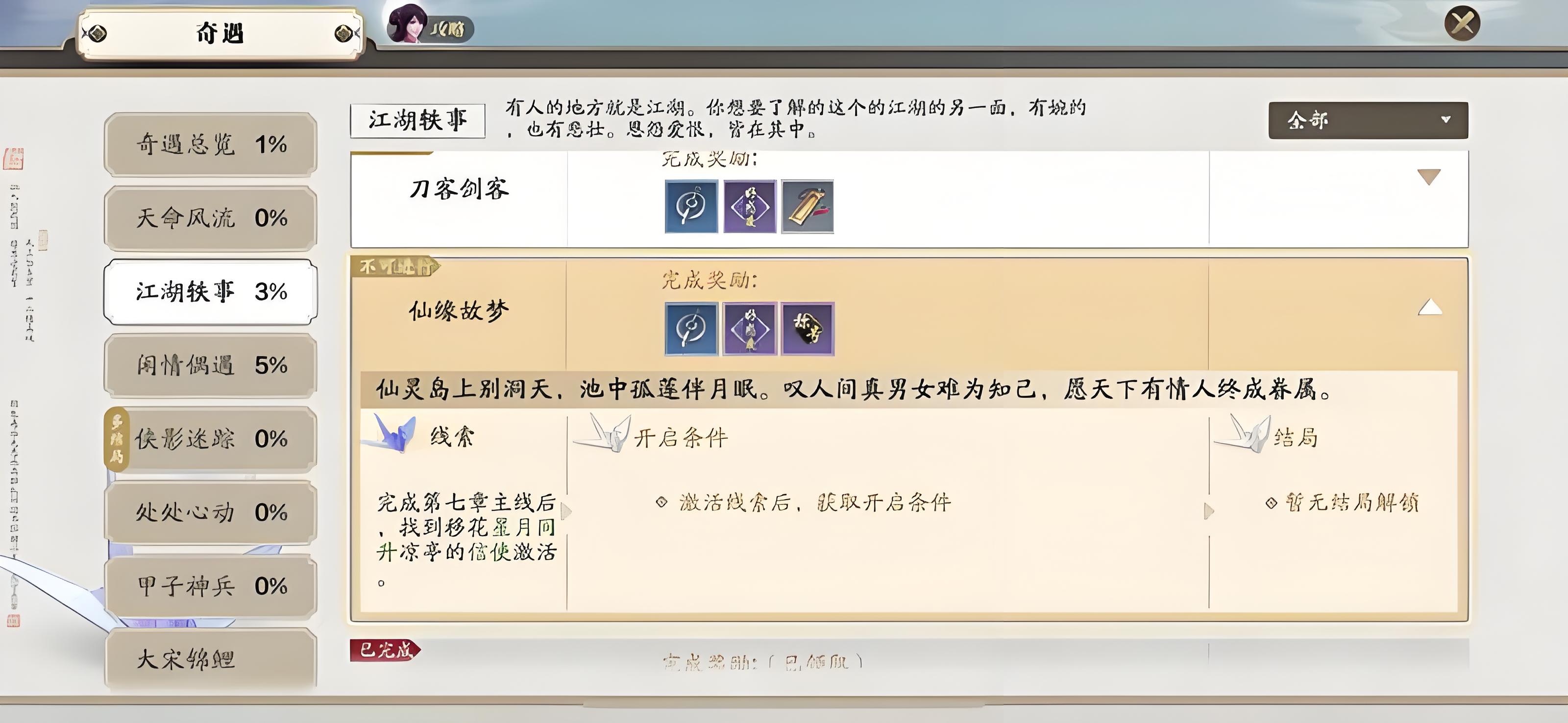 5、奇遇开启后会解锁全新仙灵岛地图,玩家将以旁观者身份见证赵灵儿和李逍遥完整爱情故事,还包含经典桥段还原。