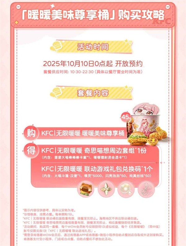 活动期间,玩家可在全国肯德基门店购买限定联动套餐,获得对应周边与游戏礼包: