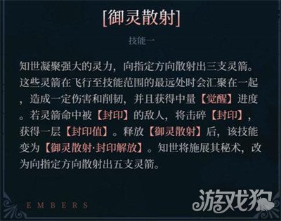 如果是退出狩这个状态的话,则会清空自身之前所有获取的封印数值,而天岚流云的效果就是会将知世提供的伤害加成达到一定的上限,然后还会获得额外的攻击距离,所以对于这类角色来说,带来的增益是比较多的,但是如果此时移动或者闪避的话,就会减少一定的距离效果,所以如果大家使用这个被动的话,就一定要注意此时就是她所在的位置,如果是使用御灵散射这个技能的话,其实就是就会利用自己的灵力带来3次灵箭输出,这些灵箭在达到技能范围最远的时候就会达成合体的效果。