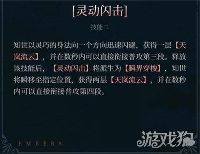 如果是命中的敌人身上带有封印效果的话,此时将击碎他身上的封印,获得一层封印值,如果是释放月灵散射的话,那么这个技能还会加上封印解放的效果,这个效果就是解放之后带来额外5次灵箭输出,在技能2上面,她有一个灵动闪击的能力,就是使用这个技化的时候,会迅速的闪避一下,然后获得一层天岚流云的增益,并且在后期的几秒之内直接衔接下一段普攻,释放了技能之后,灵动闪击将会变成派生的效果,带来瞬间穿梭的效果,然后知世就会得到一个指定位置的瞬移,再额外获取两层的天岚流云增益,在后面几秒之内可以衔接普攻第4段进行输出。
