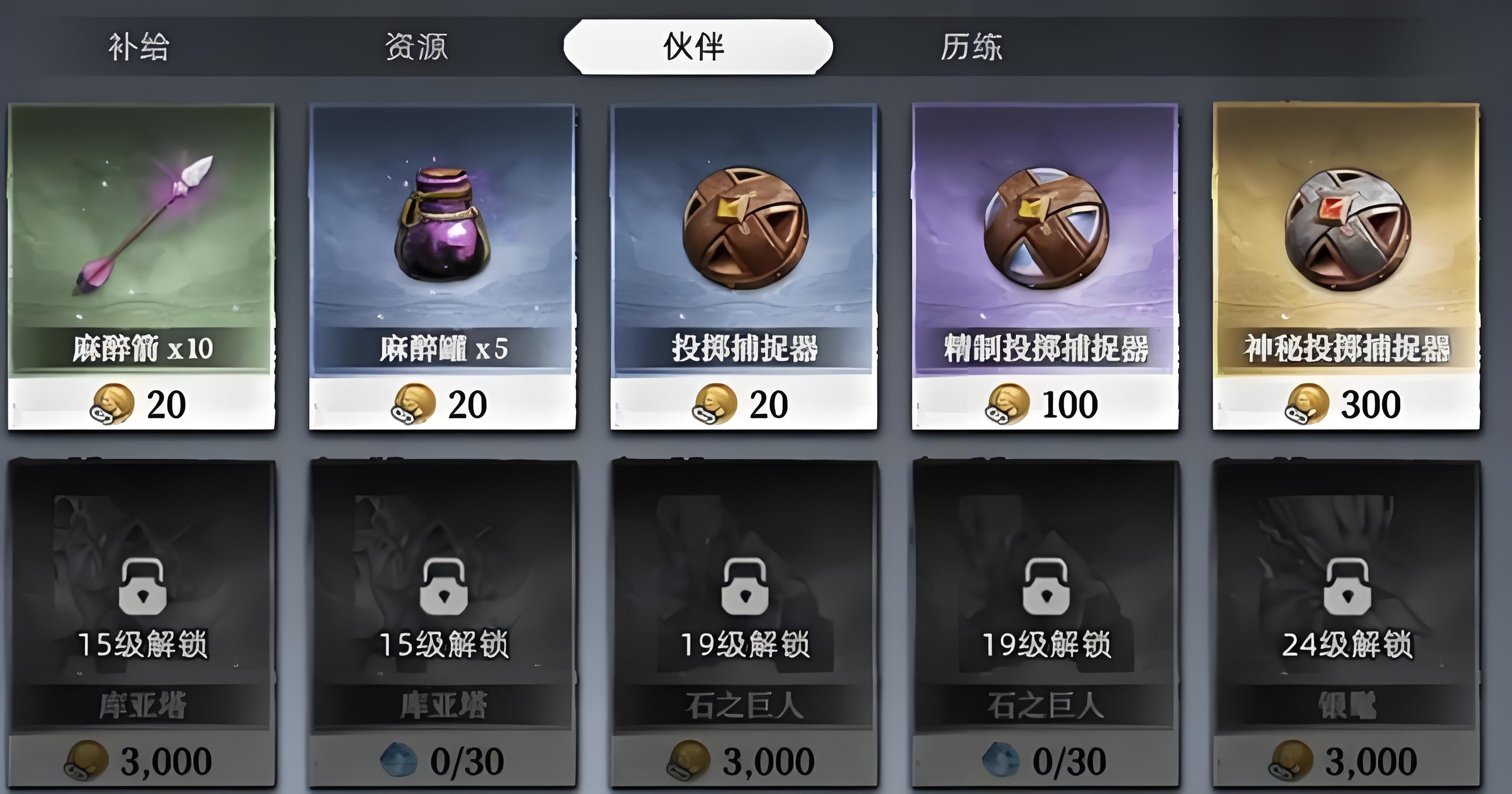 3、捕捉器分普通精致神秘三品阶从商店获取,品阶越高成功率越高,针对Boss级生物,使用前需将目标打至残血生效后直接计入家园。