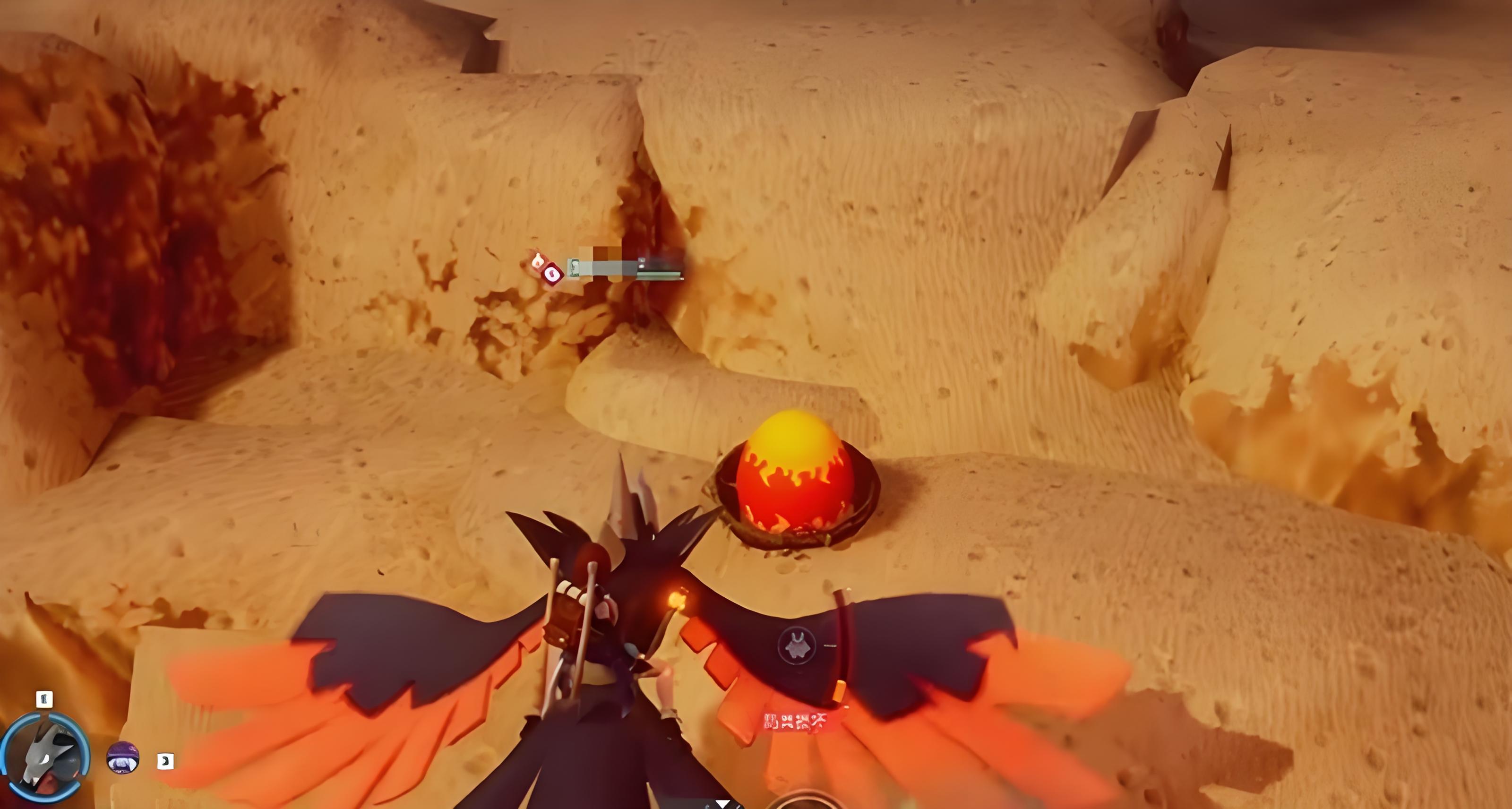 3、第三个点位在火山区域,前往需穿戴耐热服解锁飞行坐骑骑乘更方便,帕鲁蛋多分布在岩石顶端找到后建议做地图标记。