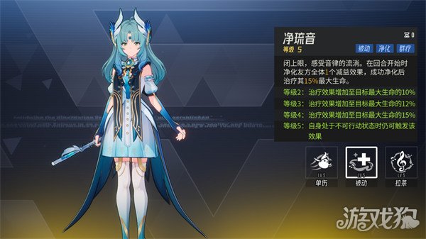水生绫回合开始时,为友方全体每人驱散一个负面效果,净化成功后治疗其15%最大生命
