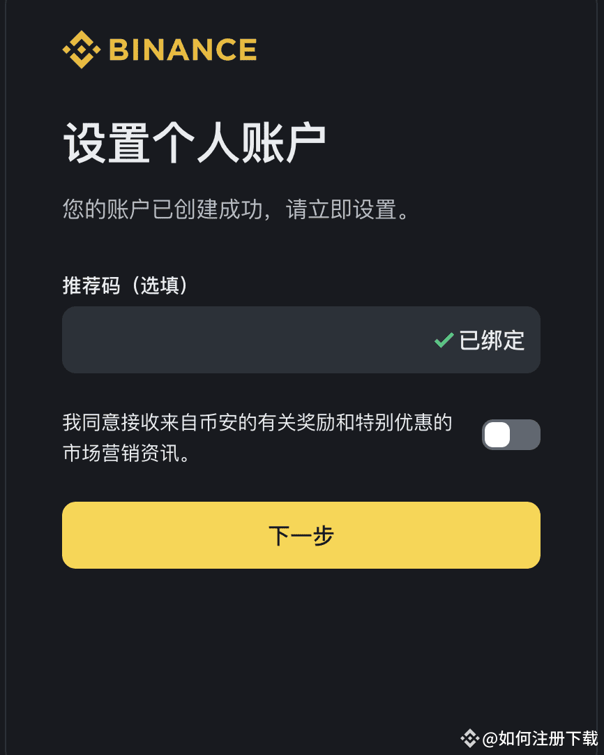 4.在设置个人账户页面时,使用系统默认的推荐码RFHBT7IA;