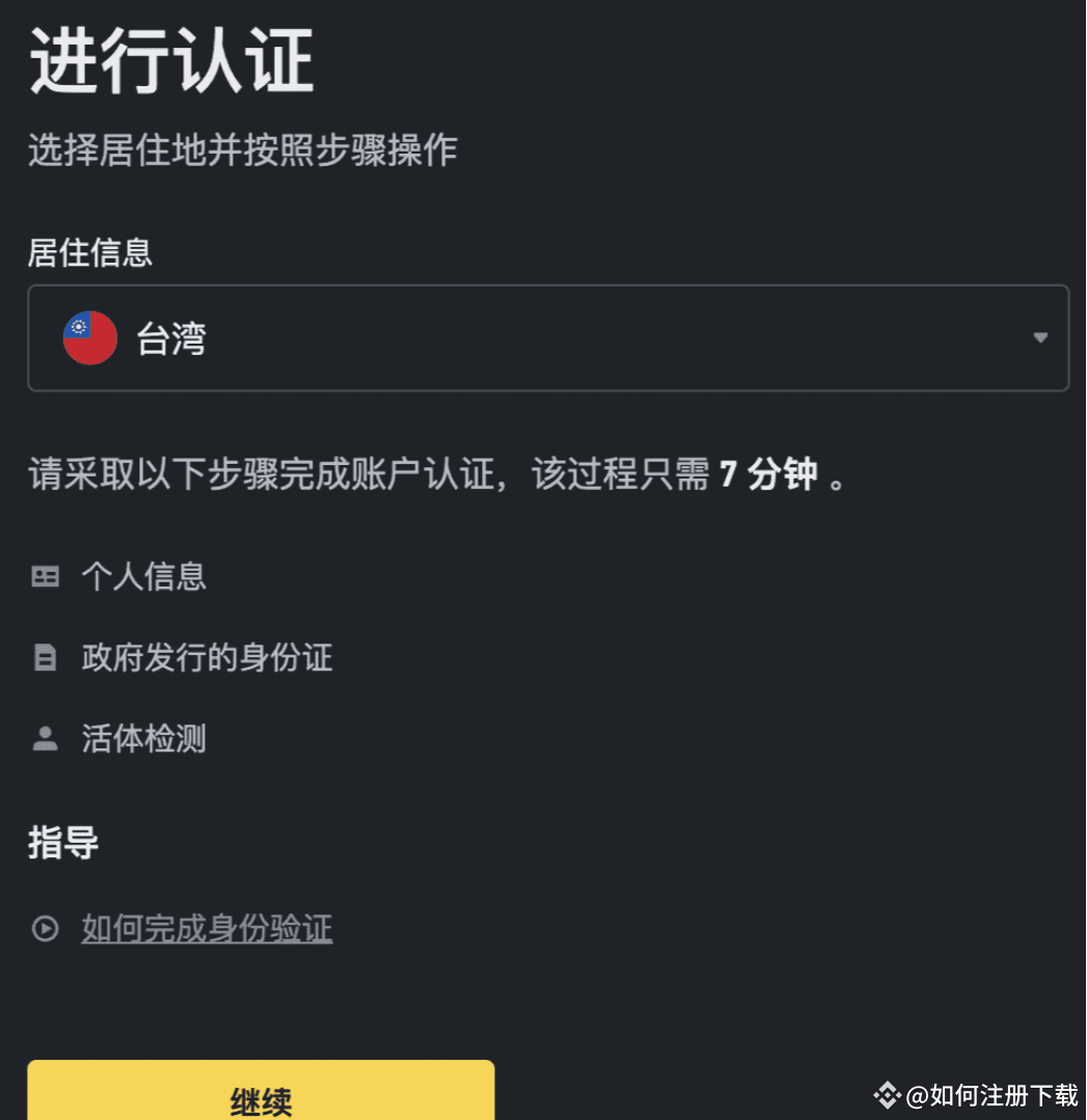 您可以选择居住地为台湾或中国,两者都可以通过身份认证。完成上述步骤后,您的身份认证即完成,可以开始使用币安的所有功能。