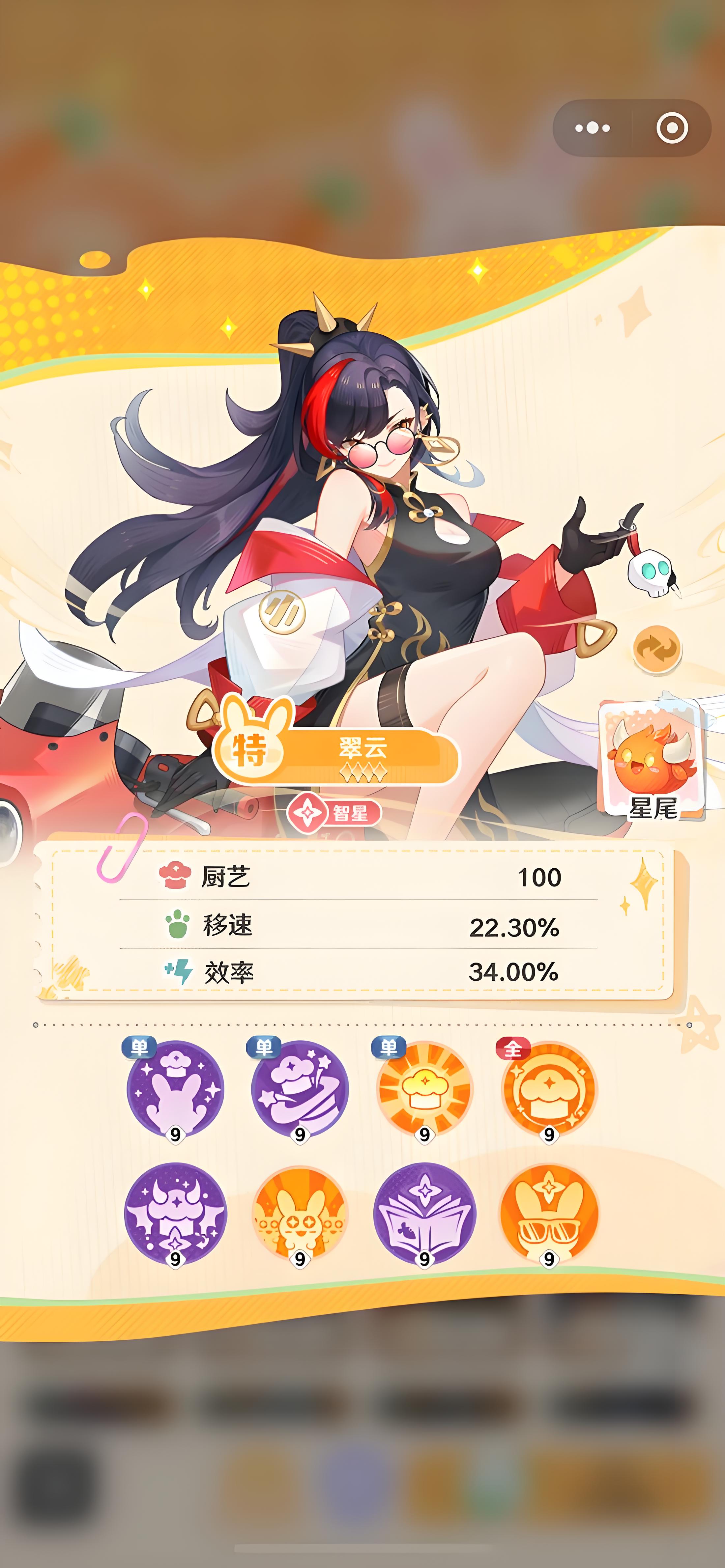 1、角色是自带智星特质的核心店员,搭配相同特质店员或厨具时各项能力显著提升,基础厨艺值100分且效率加成达34%。