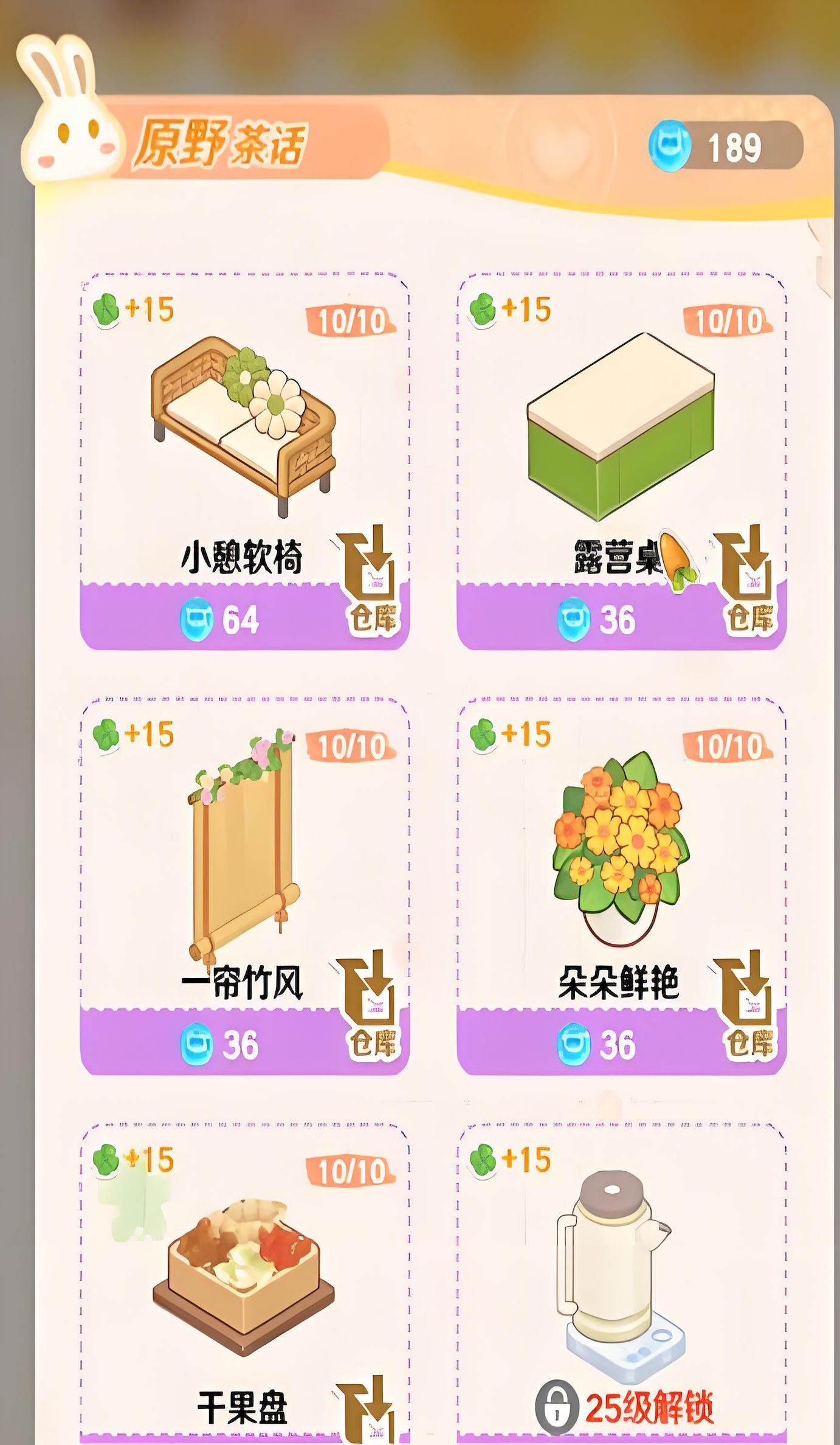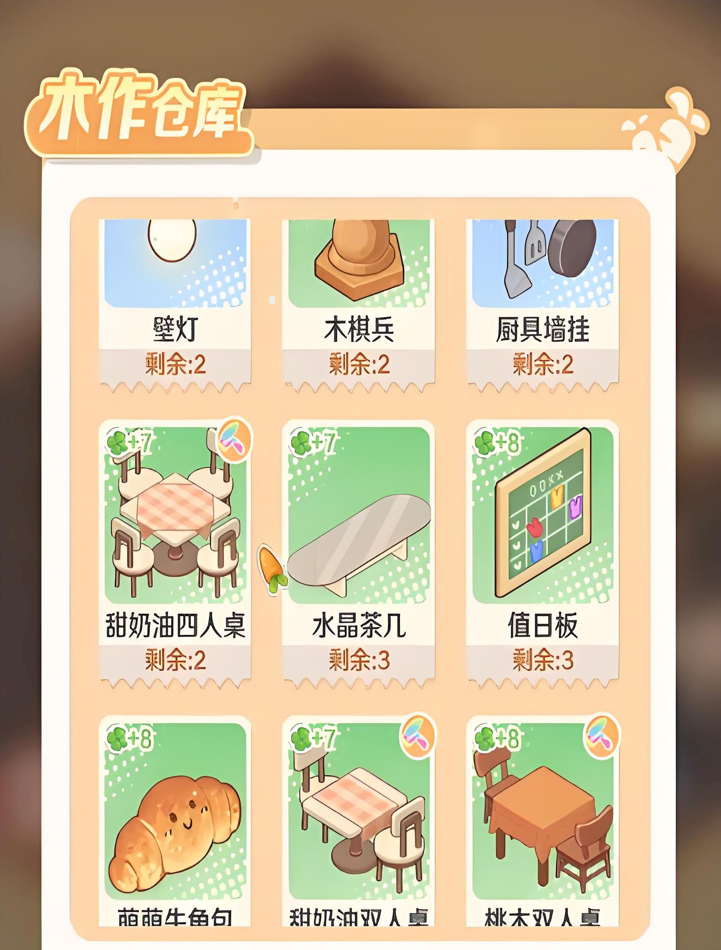 5、按正确方式合成的家具会立即放入仓库,这样做可优化店铺环境让其更舒适温馨,建议不随意摆放家具,需时从仓库拖动高等级家具。