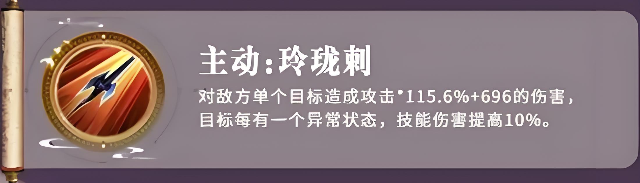 2、主动技能针对敌方单个目标,目标异常状态越多伤害越高,配合队伍先手挂异常,单点击破能力显著,提升团队输出效率。