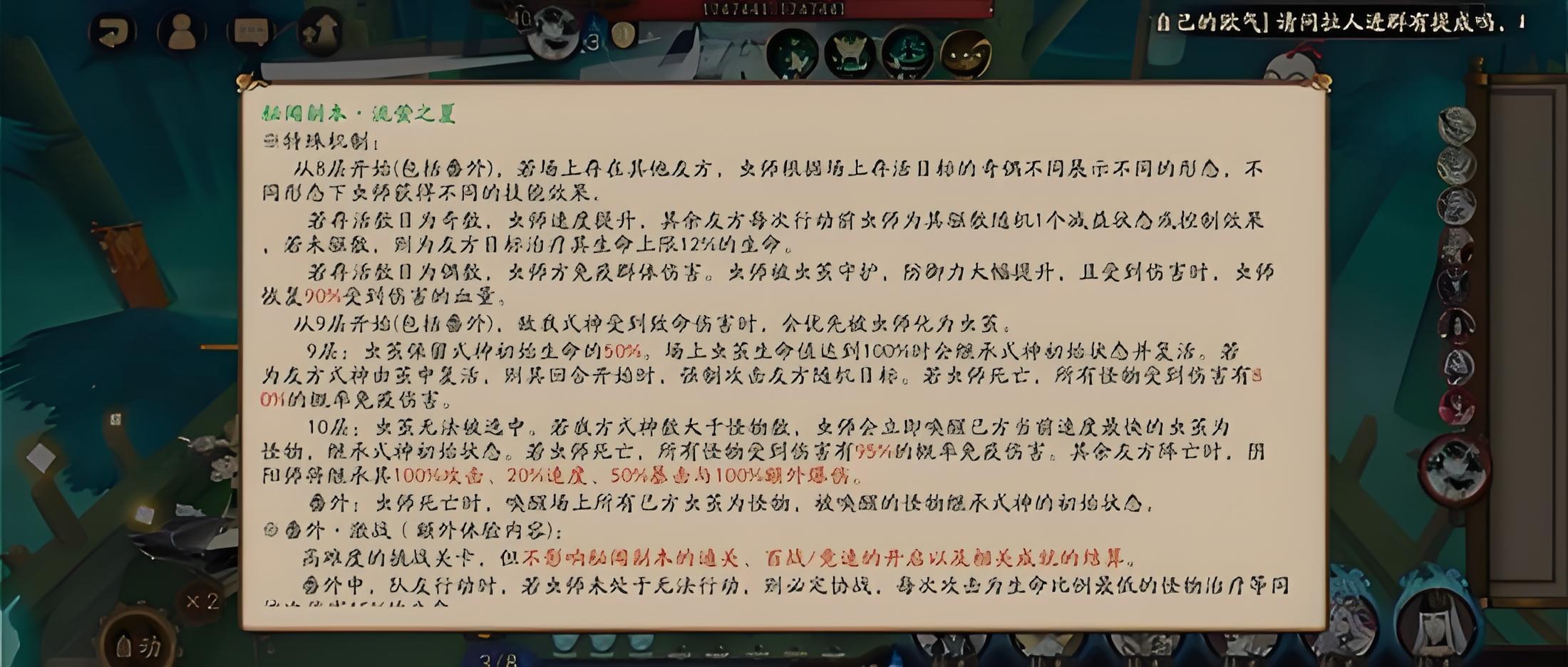 1、副本核心机制是,场上式神奇数时虫师提速驱散或治疗,偶数时免疫群伤并提防御回血,虫师死亡会唤醒虫茧成怪物。