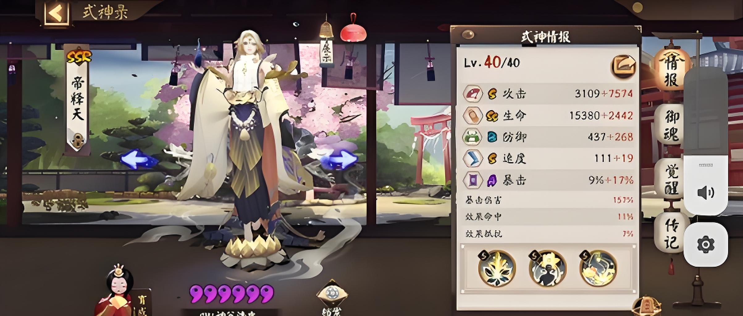 2、推荐上阵SP追月、帝释天、千姬、须佐及日和坊,缘结神可替代日和坊,帝释天需优先死以降敌方回血量,阵容练度要求低。