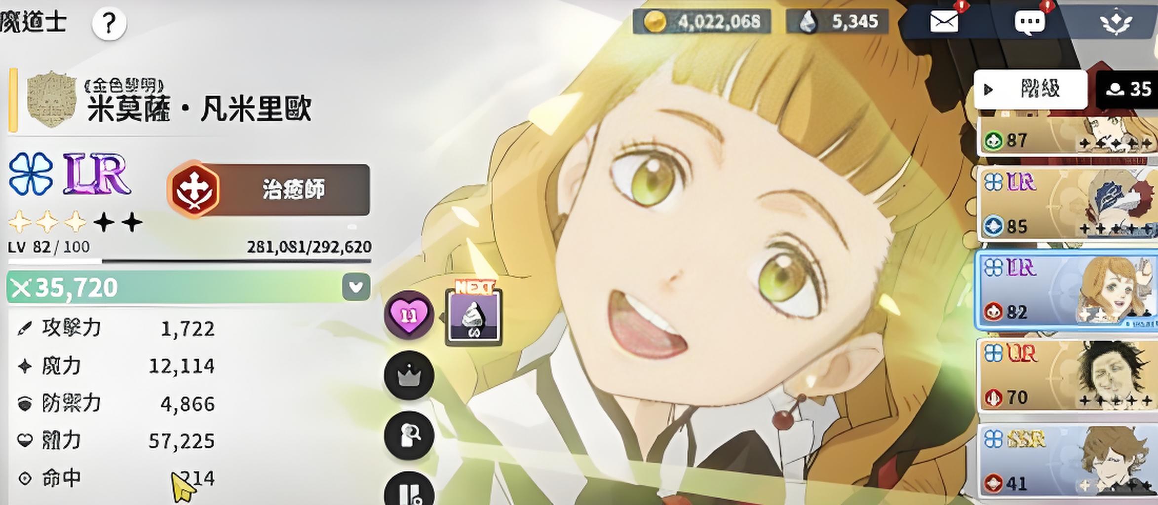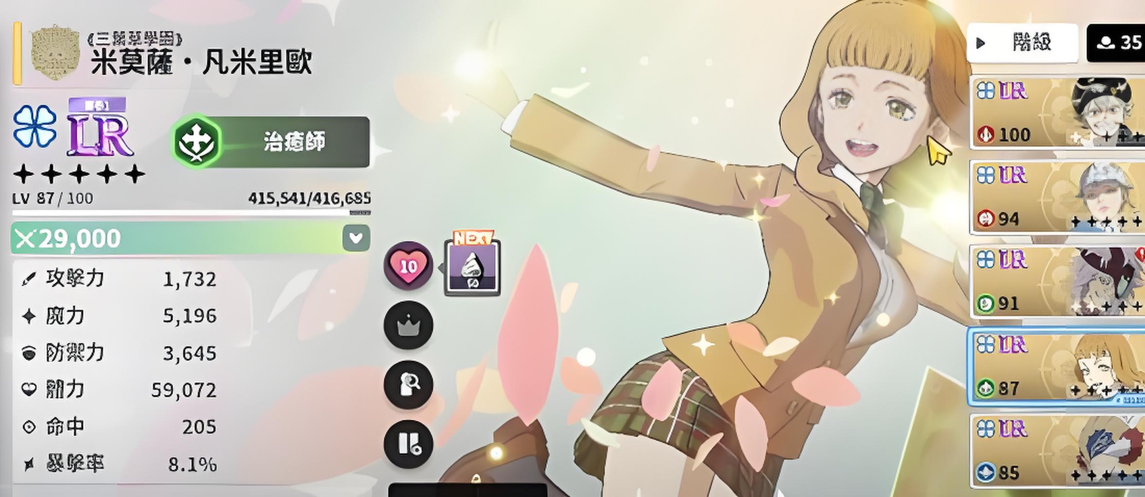 黑色四叶草魔法帝之道米莫萨是治愈系人气角色,拥有SSR稀有度,技能机制侧重团队续航,不少玩家组建队伍时关注其实战价值。她能提供治疗、净化、复活及增益效果,无论推图还是挑战副本都能保障队伍生存,接下来会梳理其技能特点、实战作用及培养价值,帮助大家全面认识该角色,明确其在队伍中的定位与使用方式。