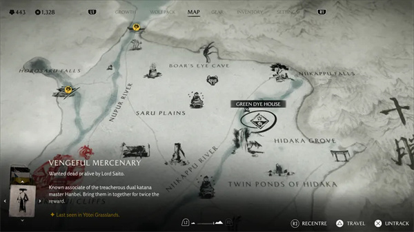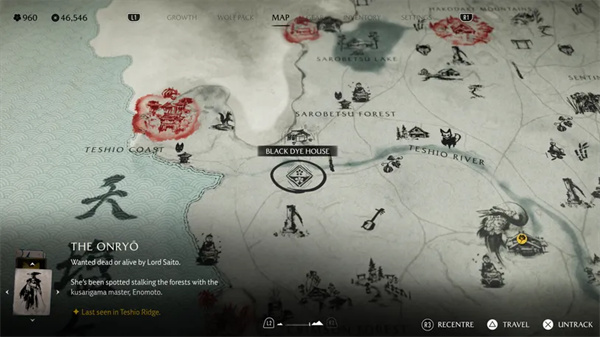 白染商人可以在羊蹄草原找到,特别是在羊蹄河。您可以在羊蹄山神社入口的东南方向、地图屏幕上羊蹄川标签中的“Y”字的西北方向找到她的白色染料屋。