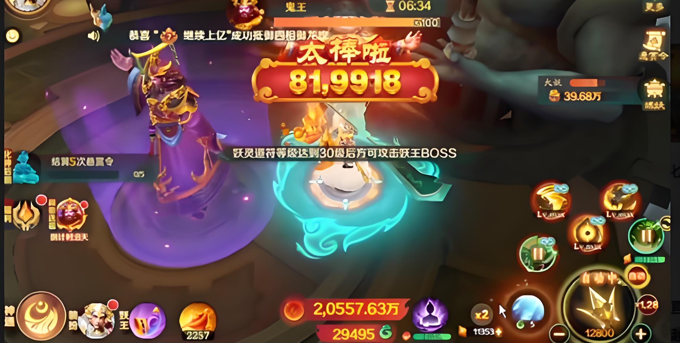 5、挑战前需先在规定时间内击败附近小妖,推荐用法师或射手类群伤职业,过程中注意血量,鬼王出现后及时切换攻击目标。