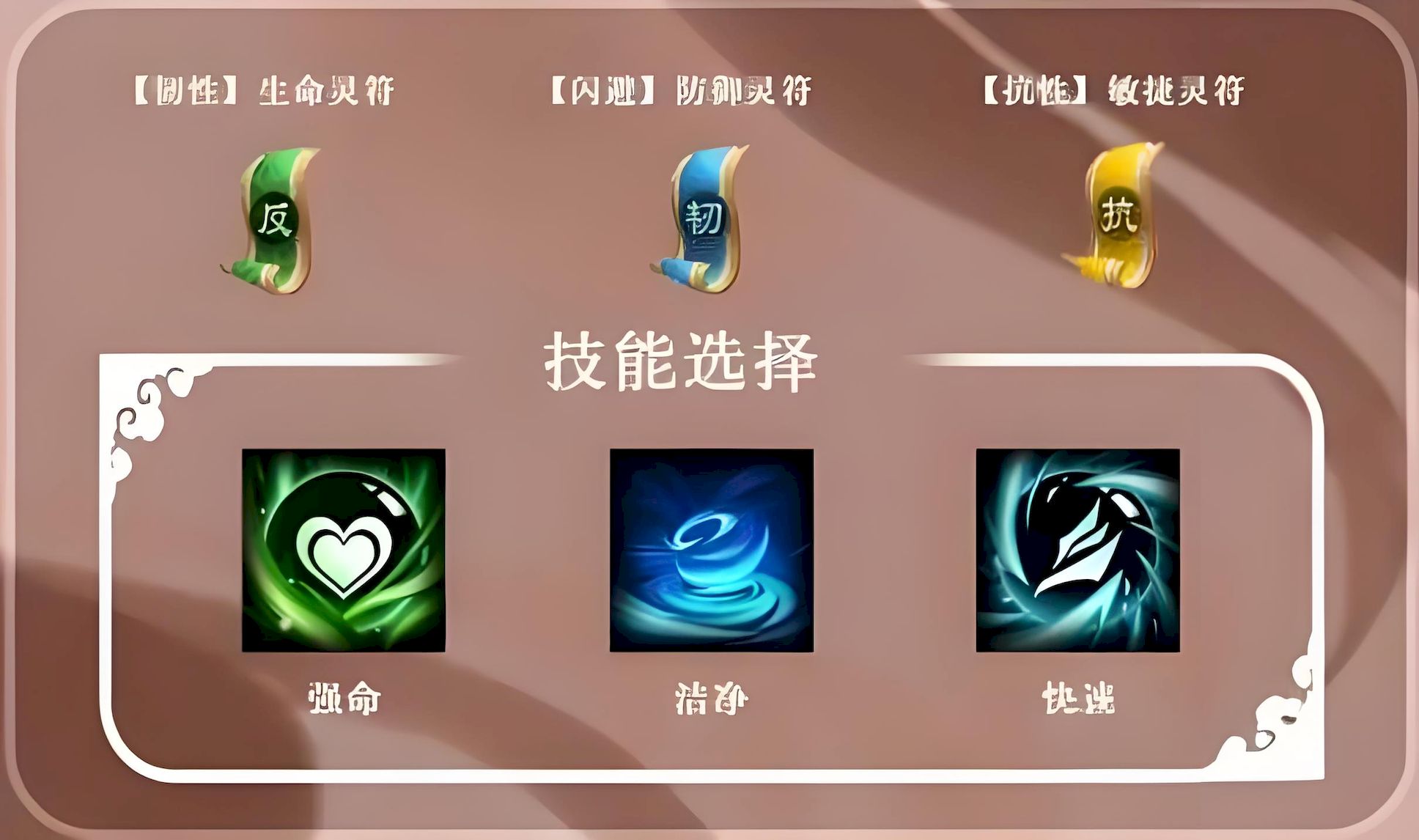 5、他推荐搭配韧性生命或闪避防御灵符,资源有限可选择抗性敏捷灵符,技能建议选强命洁净快速,适合作为前排核心搭配后排输出武将。