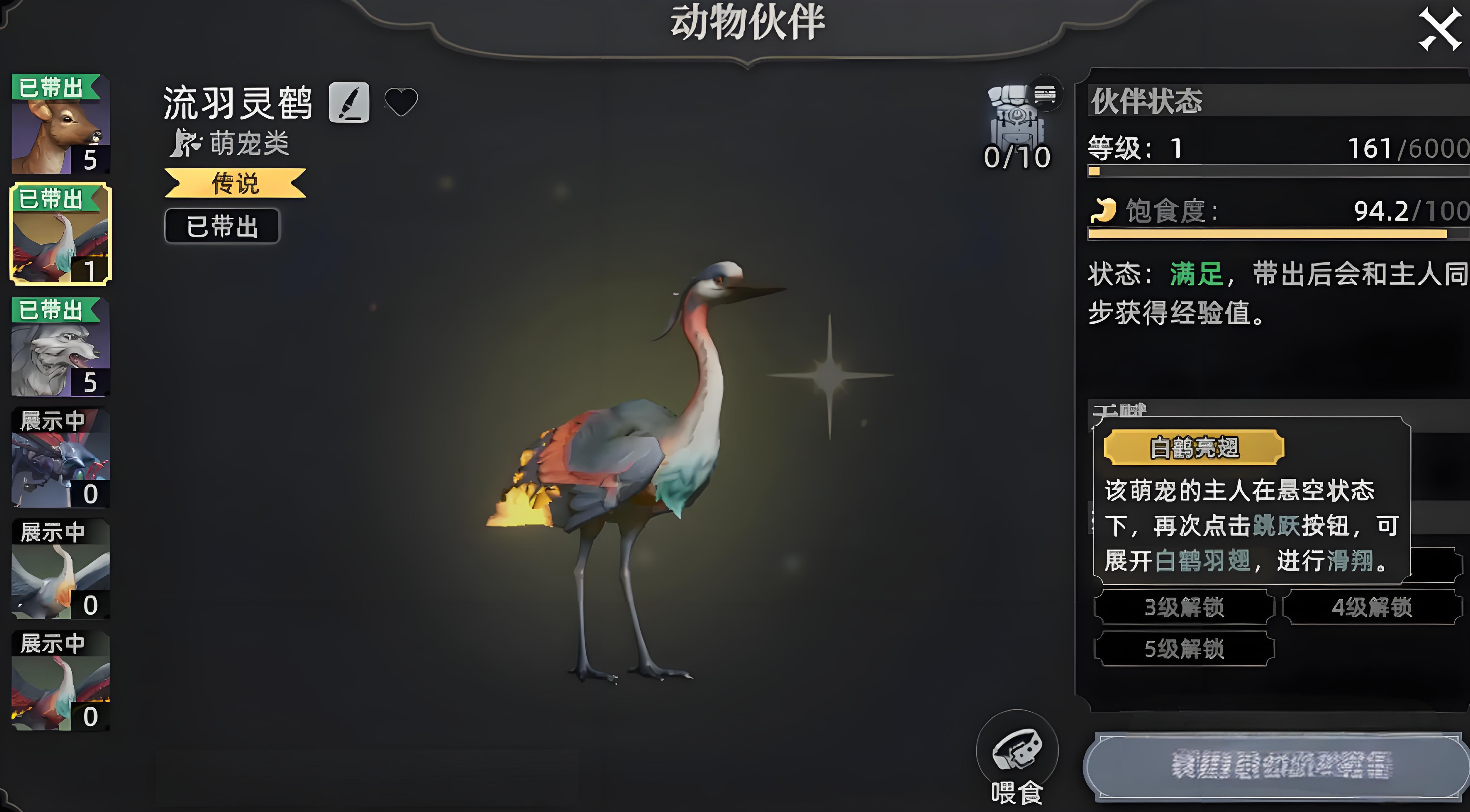 4、光鹤3级解锁白鹤亮翅技能,主人悬空时点击跳跃可展开羽翅滑翔,能减轻探索压力是前期提升移动效率的重要伙伴。