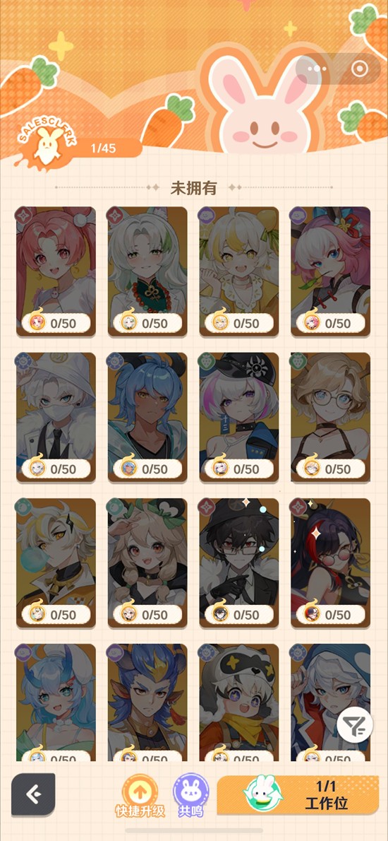 5、店铺升级可借助每日任务、协会活动积累经验,合理按工位需求匹配不同属性店员上岗,能提高接单成功率加速升级进程。