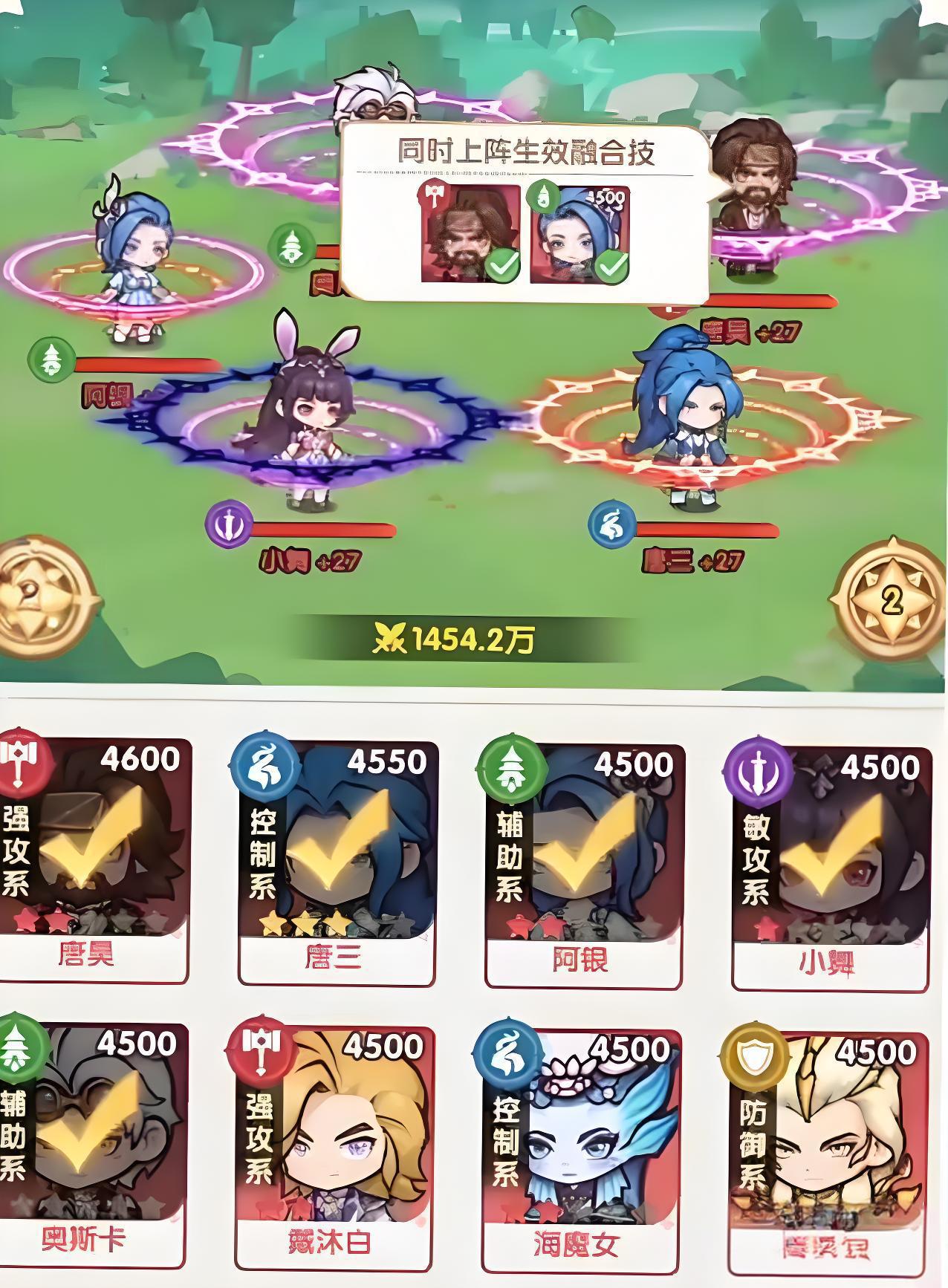 1、主动技为大须弥锤,选择随机3个生命值最高的敌方单位造成伤害,按敌方已损失血量附加额外伤害,还对其中血量最高单位加额外伤害。