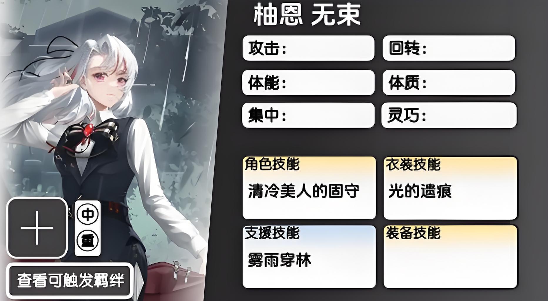 1、柚恩核心技能清冷美人的固守战斗开始提供最大生命值20%护盾,护盾存在时伤害提升25%减益时间减少50%,普攻还额外触发特殊攻击。