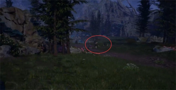 3、从树之间钻过去,图示位置往下跳;