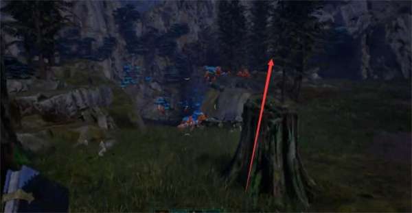 1、传到【翡翠天梯-绵延峭壁信标】靠中间的路走找到一堆小树桩;