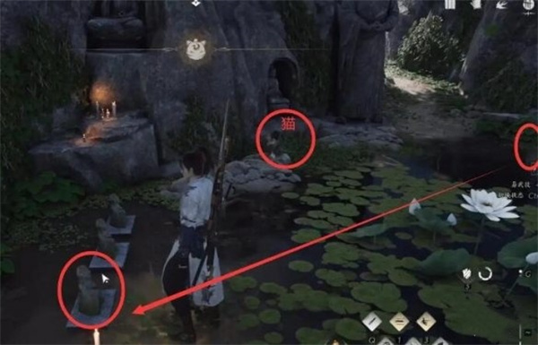 4、事件在最近的附近山洞里就有一个,对话猫后把小石像搬到对应石板上即可完成事件;